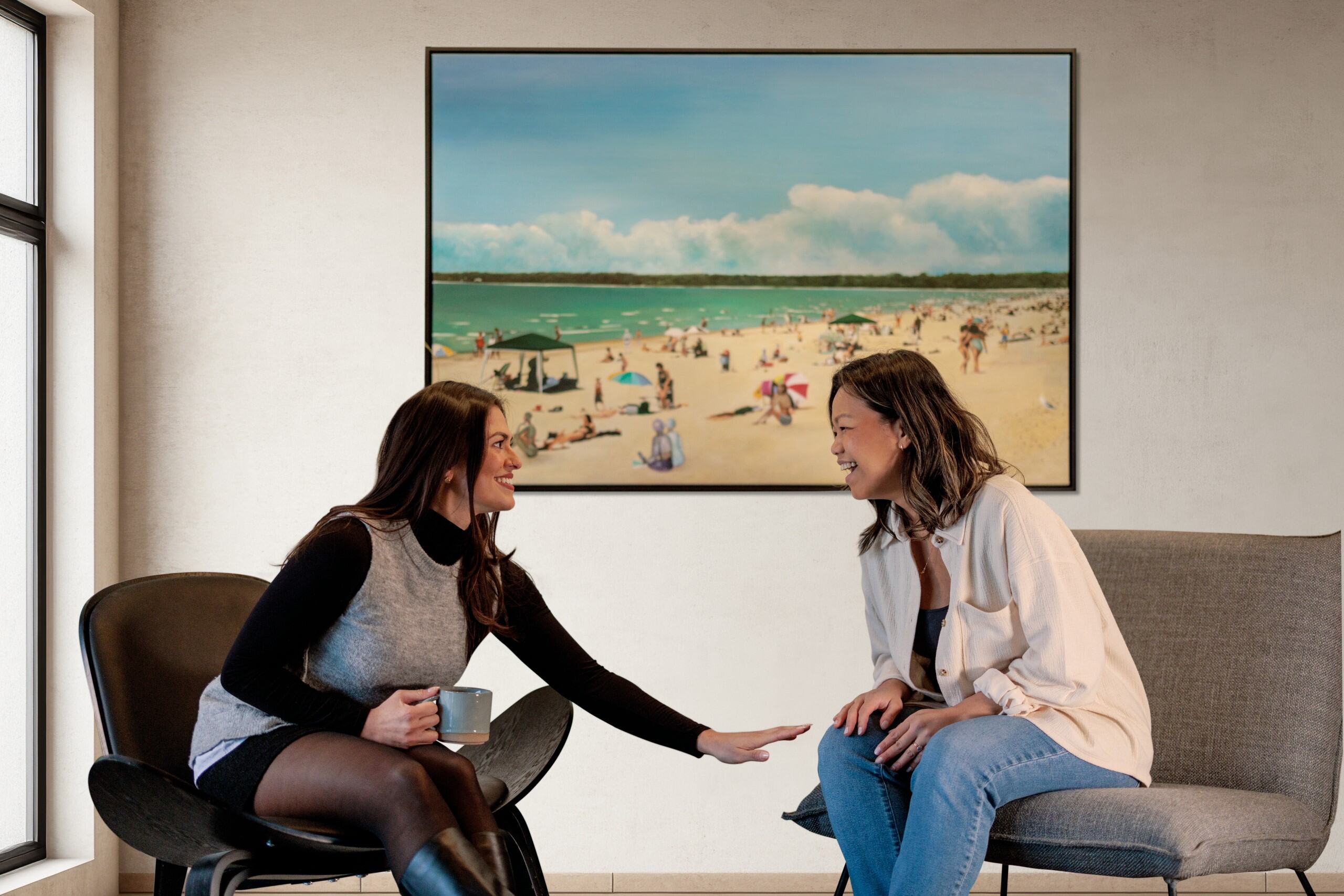 Set against the backdrop of Prince Edward County’s Sandbanks, Tanning Oil celebrates the timeless, human ritual of simply sitting by the shore, basking in the sun, and letting the mind drift with the waves. It captures a quintessential moment of peace—where sand, sun, and water converge to offer a serene, even blissfully boring, escape from the demands of life. The scene invites a curious thought: if integration between humans and AI continues to deepen, would robots, gifted with increasing autonomy, also yearn for such seemingly idle pleasures? Do robots need “me time” ? Is sitting by the water, enjoying the sun, and letting thoughts drift healthy for a robot’s state of being? Are sandy joints worth the sit?